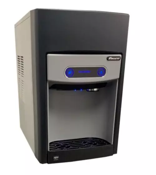 To further convenience you, your staff, and your guests, an energy-saving sleep mode is paired with an integrated quiet production setting that eliminates noisy harvest cycles. This state-of-the-art Follett air cooled countertop ice maker uses environmentally-friendly R-134a refrigerant and may be placed anywhere a water line can be run. And, since it does not require a separate drain for operation, you’ll be spared the expense of a costly drain installation. The unit requires a 115V electrical connection.